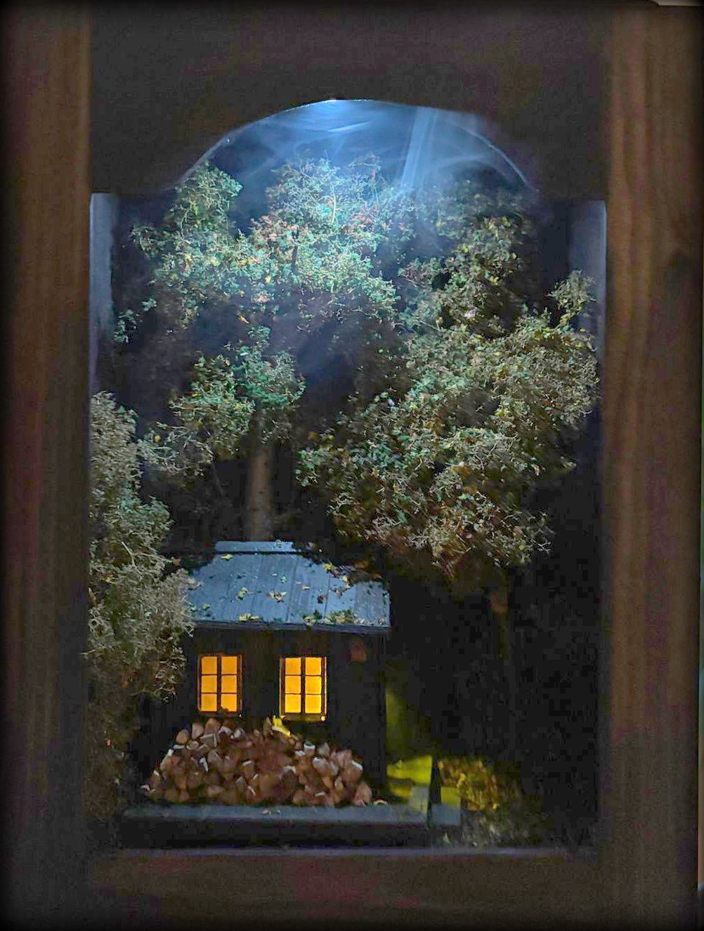 Handgefertigte Miniaturarbeit – Waldhütte im Abendlicht Preis 440,00€