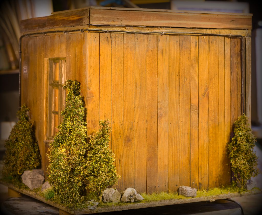 Jedes Element dieses Dioramas wurde in sorgfältiger Handarbeit gefertigt und bewusst gealtert. Kleine Unregelmäßigkeiten, Abnutzungsspuren und die fein abgestimmte Beleuchtung verleihen der Szene eine besondere Tiefe und Glaubwürdigkeit.